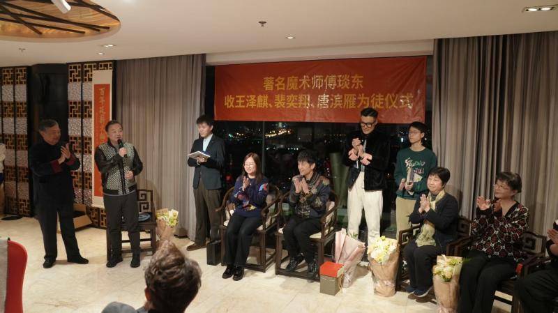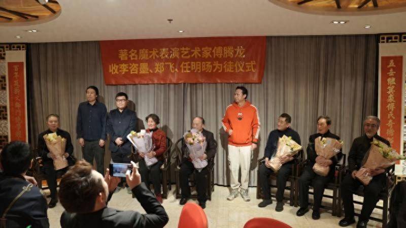 近日,中国魔术大师、国家级非遗项目“傅氏幻术”代表性传承人傅腾龙,与其子,曾在央视春晚表演的魔术师傅琰东在北京同收新徒弟。