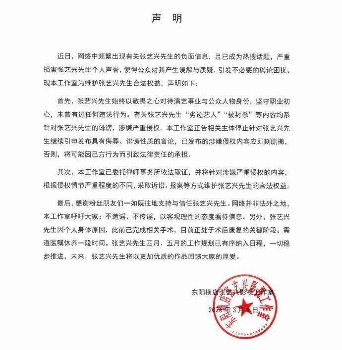 表哥前两天跟大家提到过张艺兴的事,说他的活动被上面限制了,新的演出活动申请不下来,原定好的行程也被紧急取消了。但张艺兴那边是不认这些的,还发了声明称他之前行程有变,是因为做了鼻炎手术要休养才推掉的工作。